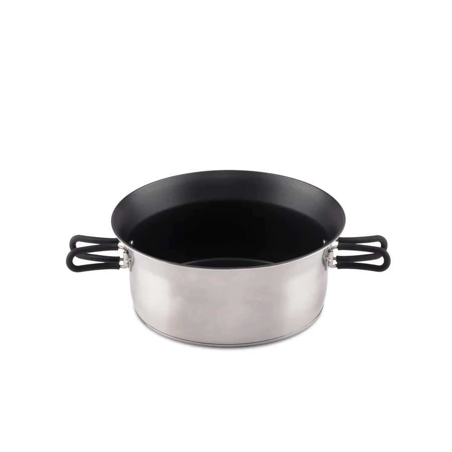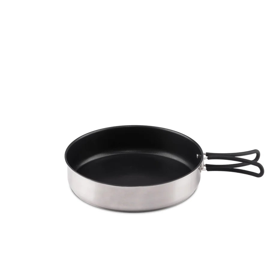 The Dimego pot set combines a well thought-out, space-saving design with practical functionality. The stacking function combined with heat-insulated, foldable handles makes it easy to transport and compact to store, whether you’re backpacking or traveling in a camper.