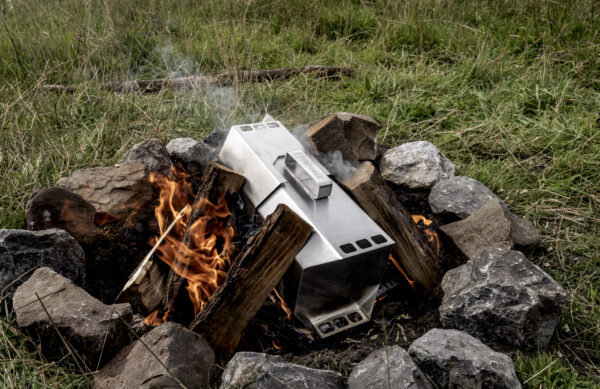 Low-oxygen combustion, or pyrolysis, powers the Maker, allowing you to use logs or twigs to craft your own high-temperature barbecue charcoal, with a long burn time and minimal smoke.