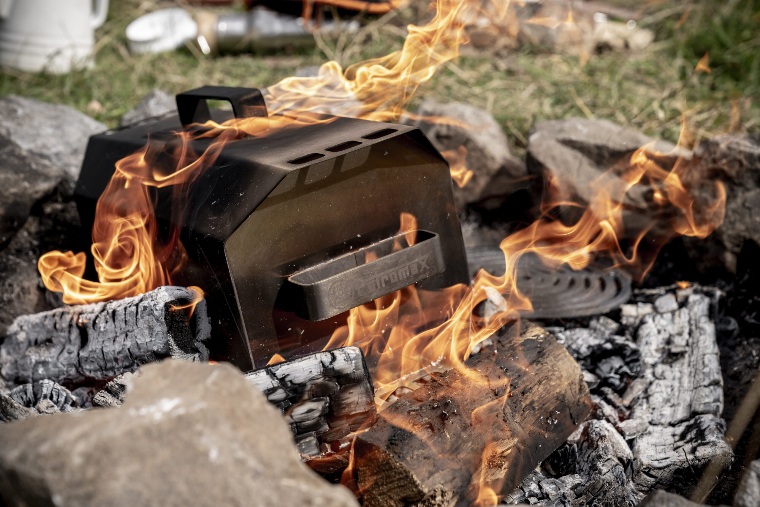 Put the Maker in the fire to start the process and watch smoke transition from deep yellow to white. When finished, simply remove the Maker and let cool overnight. The next morning, clean with a mild detergent and cloth.