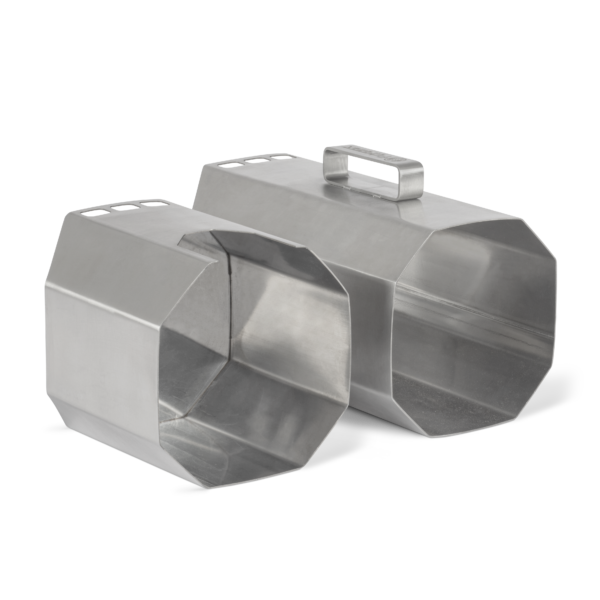 This stainless-steel canister gives modern form to the age-old tradition of making charcoal in a kiln.