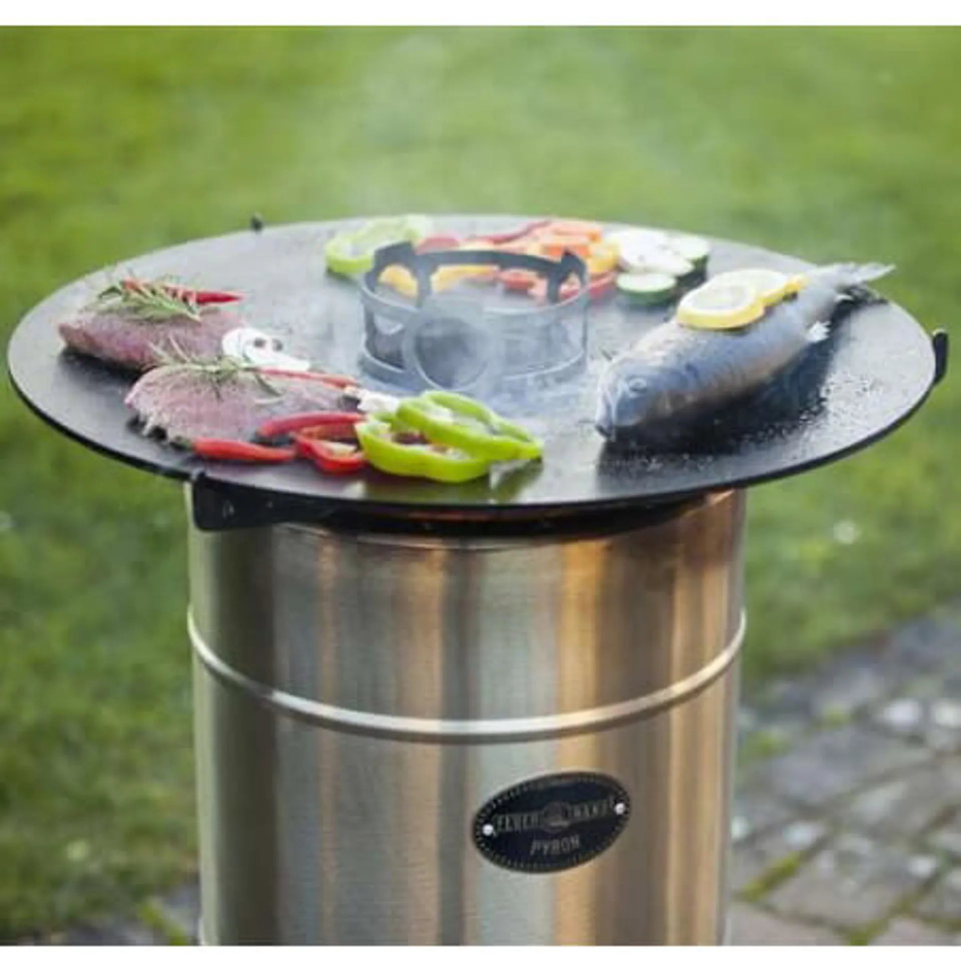 • precisely fitting support frame for secure positioning on the Pyron fire barrel or Tyropit fire bowl