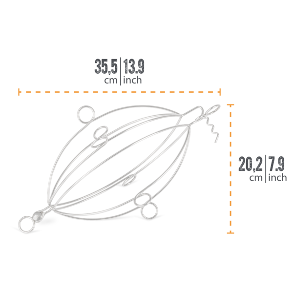 Features: Adjustable hanging height for easy temperature regulation Particularly succulent cooking result and unique aroma over an open fire Uniform cooking process thanks to the swivel and hanging loops on each rod Quick and safe fixation of the chicken by two connected half-shellsDurable material