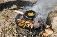 This makes the Atago grill plate a Spanish plancha plate with different temperature zones for versatile grilling enjoyment: With the Atago grill plate you extend your multi-talented Atago with a typical Spanish plancha plate with sophisticated details. Made in Germany from 3mm thick oiled steel, the grill plate delivers the best results thanks to different temperature zones. You sizzle hearty meat specialties extra juicy, while at the same time grilled vegetables or spicy shrimp are waiting to be served on the edge at lower heat. The patina that builds up provides a natural non-stick effect that gets better with each use – for this purpose, season your griddle carefully before using it for the first time. Once the fire is stoked, the plate comes up to temperature very quickly, guaranteeing you sharp searing. The Atago does not run out of energy quickly, but you can easily add wood or coal through the recess in the middle of the Atago grill plate. Thanks to its flat pack design, you can easily stow it in your car or van and use it as a versatile cooking and grilling station for every trip into the woods and meadows. Thanks to the optimal heat distribution, you will achieve an ideal cooking result effortlessly and every dish will be a delight – the Atago grill plate will accompany you on every one of your adventures without any problems. Ships as Plancha plate and 3 piece support, Atago grill, Centre cooking support and centre grill insert sold separately