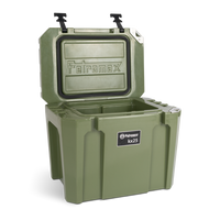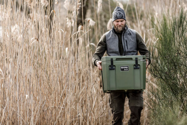 Being well prepared for days without electricity? The Petromax Cool Box kx50 allows you to provide for yourself during a multi-day adventure. The ultra-passive cooling system operates with commercially available ice, cold packs or dry ice. The double-walled, void-insulated kx50 keeps ice cool for up to 12 days on end without a compressor or absorber. The inside of the kx50 has a volume of 50 L and is designed in such a way that either 70 x 330mL cans or 20 x 1 L bottles can be stored and transported upright High calibre cooling system With an insulation layer of at least 45 mm the Petromax Cool Box guarantees you a very long temperature resistance when used outdoors. However, this is not all: The robust PE corpus is very stable so that you can easily use the box as raised seat or platform. As a result, you can comfortably cast your fishing line or get an overview over your surroundings. In addition, thanks to the edged design of the kx50 it can be well stacked or stowed inside the boot or below deck. Refilling of ice or the cleaning of the cooler later on are simplified by the integrated draining system. Thus, you can drain melt water at any time, also during use and Prolong the cooling time according to your requirements. Handling fit for adventureFor outdoor cooking and use in nature the demands on reliable equipment are high. Next to the extremely long temperature stability there are further functions which distinguish the Cool Box as being fit for adventure: cavities in the lid enable criss-cross lashing. This way, you safely stow your kx50 for transport on deck of a boat or on the loading area of your pickup truck. The ergonomic handles on each side can also be used as tie down points which allows you to open the coolbox while still securely tied down. The non-slip rubber fasteners can be operated with one hand and can also be well managed with wet fingers. You can additionally secure your supplies via reinforced locking plates with a commercially available U-lock. Four rubber feet under the Cool Box ensure a firm stand as well as ventilation from below. Proper usage of the Cool Box