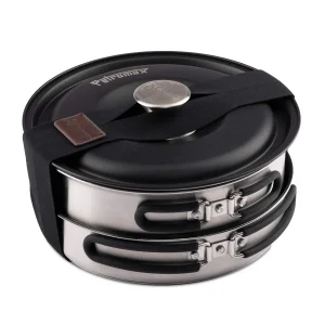 Non-stick ceramic coating The ceramic coating of the Dimego camping pot set guarantees a cooking experience without unwanted sticking. Whether you are cooking on a gas stove outdoors or on your induction hob at home, your dishes can be prepared effortlessly and leave no residue behind. Space-saving design The Dimego pot set combines a well…